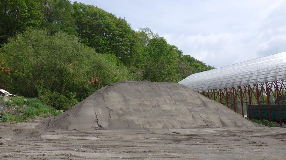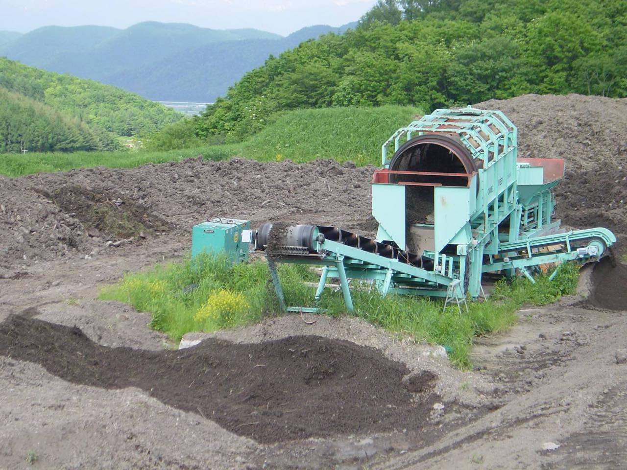 市内や近隣町村の建設工事等に伴い発生するすきとり物(草根等を含む土砂)から「再生表土」を製造しています。受入したものは選別装置で選別及び粒度調整して、緑化基材として植栽表土等に利用されております。